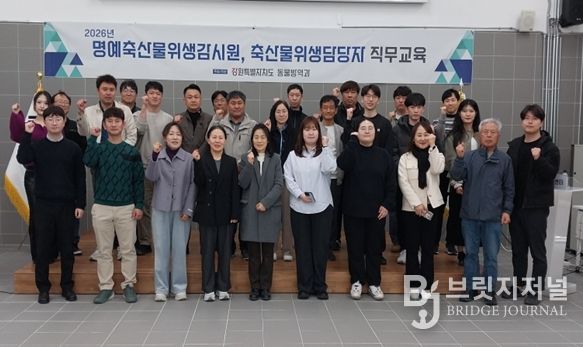 브릿지저널 윤나영 기자 | 강원특별자치도는 3월 26일 강릉시 사천면 반려동물지원센터에서 도내 명예축산물위생감시원(이하 명예감시원)과 시군 축산물 위생 담당 공무원을 대상으로 ‘2026년 상반기 직무교육’을 실시했다.