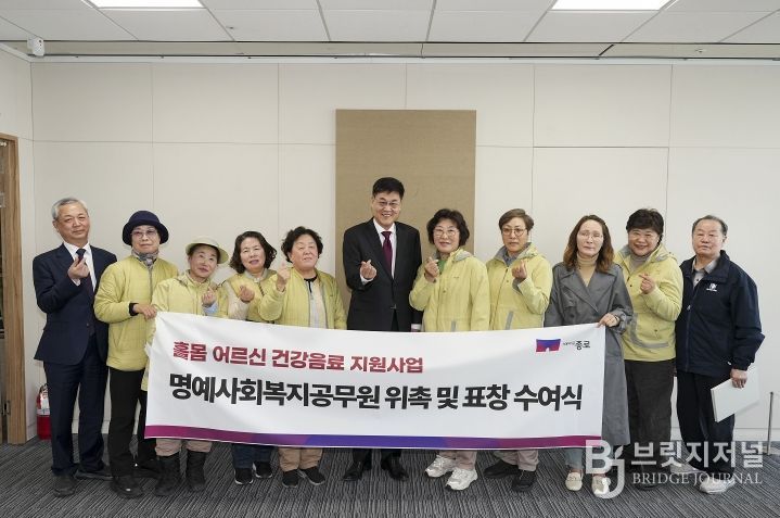 브릿지저널 김경미 기자 | 종로구는 주기적으로 건강 음료를 배달하며 홀몸 어르신의 안부를 묻고 건강 관리를 지원해 온 배달 매니저 10명에게 3월 26일 구청장 표창을 수여했다.