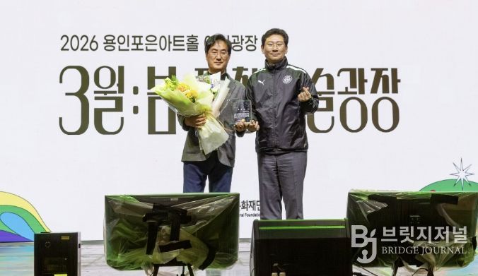 브릿지저널 김경미 기자 | 용인문화재단 김혁수 대표이사가 지난 3월 27일 용인포은아트홀 야외광장에서 열린 ‘제철 예술광장 '3월:봄'’ 행사 현장에서 이상일 용인특례시장으로부터 공로패를 받았다. 이번 공로패는 재임 기간 동안 용인문화재단 운영 전반에서 축적된 성과와 공적을 종합적으로 인정한 데 따른 것이다.