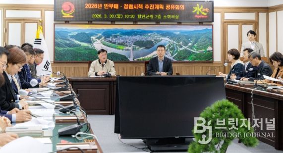 브릿지저널 김경미 기자 | 합천군은 30일 군청 소회의실에서 김윤철 군수를 비롯해 부군수 및 간부 공무원 등 20여 명이 참석한 가운데 회의를 열고, 2026년 반부패‧청렴시책 추진계획을 공유했다.