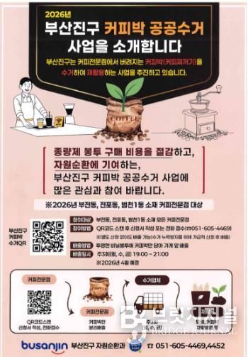 브릿지저널 윤나영 기자 | 부산 부산진구는 오는 4월부터 부전동, 전포동, 범천1동에 소재한 커피전문점을 대상으로 커피박 공공수거 사업을 시행한다.