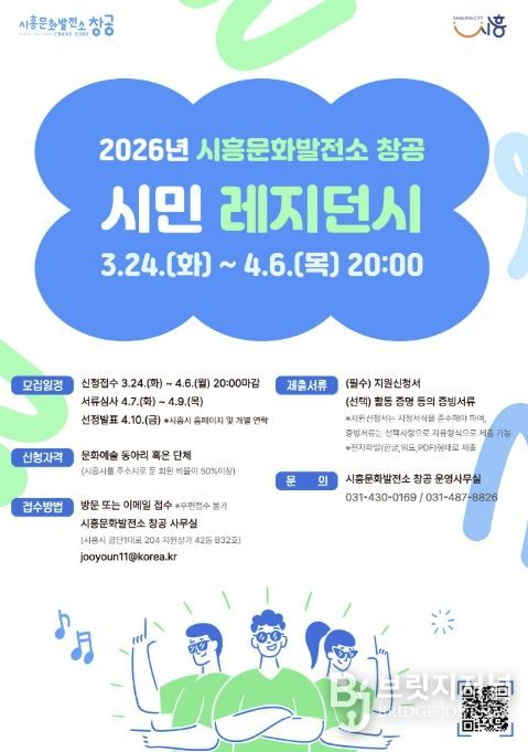 브릿지저널 김경미 기자 | 시흥시는 시흥문화발전소 창공에서 2026년 시민 레지던시에 참여할 문화예술 동아리 및 단체를 4월 6일까지 모집한다고 밝혔다.