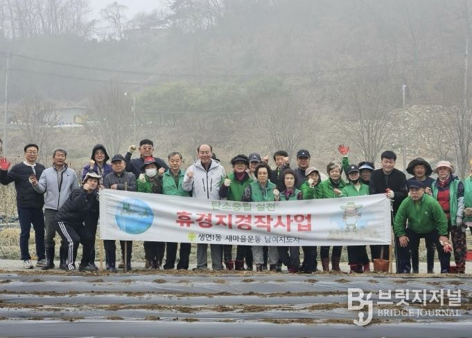 브릿지저널 김경미 기자 | 생연1동 새마을남녀지도자협의회는 지난 28일 지역 내 휴경지를 활용한 감자 심기 활동을 했다.