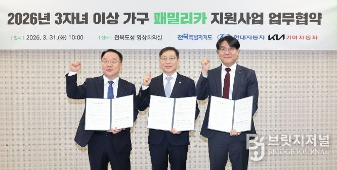 브릿지저널 윤나영 기자 | 전북특별자치도가 현대자동차·기아와 손잡고 자녀 3명 이상 다자녀가구를 위한 패밀리카 구입비 지원사업을 전국 최초로 본격 가동한다.