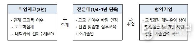 이 사업은 전문대학이 직업계고와 협력하여 교육과정을 연계하고 전문학사 취득 기간을 1학기 이상 단축함으로써, 지역 산업에 필요한 전문 기술인재를 조기에 양성할 수 있도록 올해 처음 재정지원 사업으로 추진된다.
