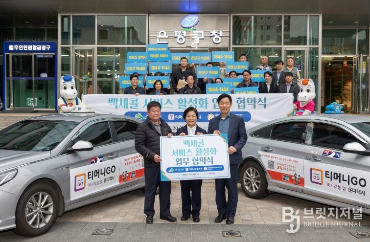 브릿지저널 김경미 기자 | 서울 은평구는 지난 30일 ㈜티머니모빌리티, 서울개인택시운송사업조합 은평지부와 ‘백세콜 운영 개선을 위한 업무협약’을 체결했다고 밝혔다.