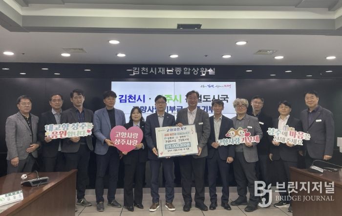브릿지저널 정보영 기자 | 상주시 건설도시국에서는 3월 31일 김천시청에서 김천시 건설도시국을 비롯한 부서 관계자들이 참석한 가운데‘고향사랑 기부제’상호기부 협약식을 가졌다.