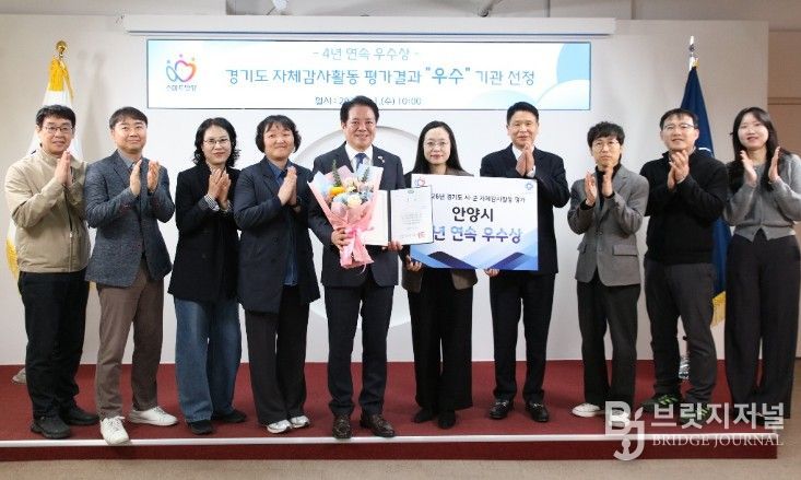 브릿지저널 김경미 기자 | 안양시가 ‘2026년 경기도 자체감사활동 평가’에서 4년 연속 우수상을 받았다고 밝혔다.
