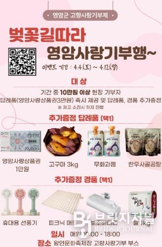 이와 함께 축제 기간인 4월 4일부터 12일까지 축제장 내 고향사랑기부 부스에서는 현장 기부 이벤트도 운영된다.