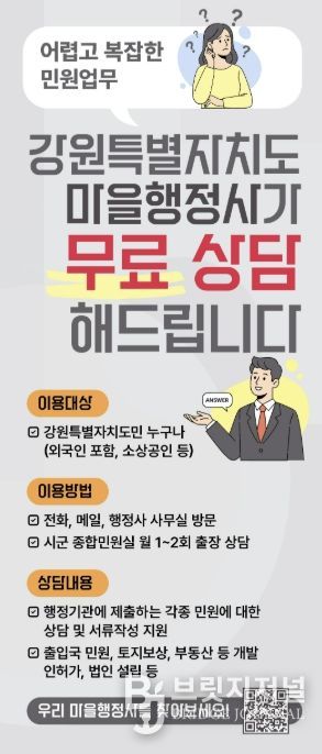 브릿지저널 윤나영 기자 | 강원특별자치도와 홍천군은 4월부터 군민들의 행정적 불편을 해소하고 권익을 보호하기 위해 신규 시책인 ‘마을 행정사’ 제도를 본격 운영한다.