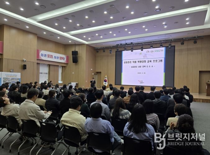 교육은 성과관리팀장이 ‘2026년 통합성과관리(BSC) 운영 계획’을 설명하며 성과관리 체계의 운영 방향과 평가 절차, 주요 개선사항 등을 공유했다.