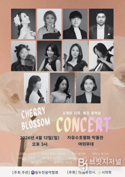 브릿지저널 김경미 기자 | 동두천시는 벚꽃이 만개하는 4월을 맞아 오는 12일 오후 3시, 자유수호평화박물관 야외무대에서 새봄의 시작을 알리는 ‘신춘음악회’를 개최한다고 밝혔다.