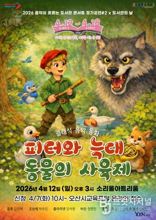 브릿지저널 김경미 기자 | 오산시 소리울도서관은 오는 4월 12일 오후 3시 소리울아트리움에서 ‘2026 도서관의 날’을 기념해 온 가족이 클래식의 매력을 즐길 수 있는 '음악이 흐르는 도서관 콘서트'를 개최한다.