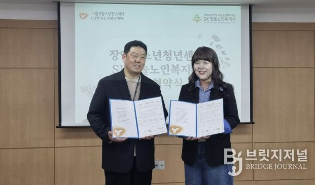 브릿지저널 김경미 기자 | 수원시청소년청년재단 장안청소년청년센터와 청솔노인복지관은 4월 1일 장안청소년청년센터에서 지역사회 내 세대 간 소통과 통합을 도모하기 위한 업무협약(MOU)을 체결했다.