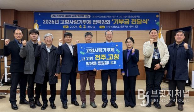 브릿지저널 윤나영 기자 | 전주시와 고창군의 농생명 분야 거점 연구기관들이 2년 연속으로 고향사랑기부제 활성화를 위한 상호 기부에 동참하며 지역 상생 협력을 실천했다.