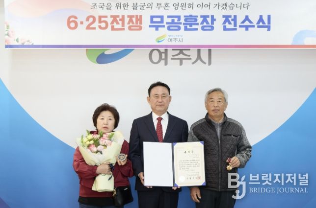브릿지저널 김경미 기자 | 여주시는 지난 2일 6‧25전쟁 무공훈장 전수식을 개최하고, 故이석만 상사의 공적을 기리며 화랑무공훈장을 유가족에게 전수했다.