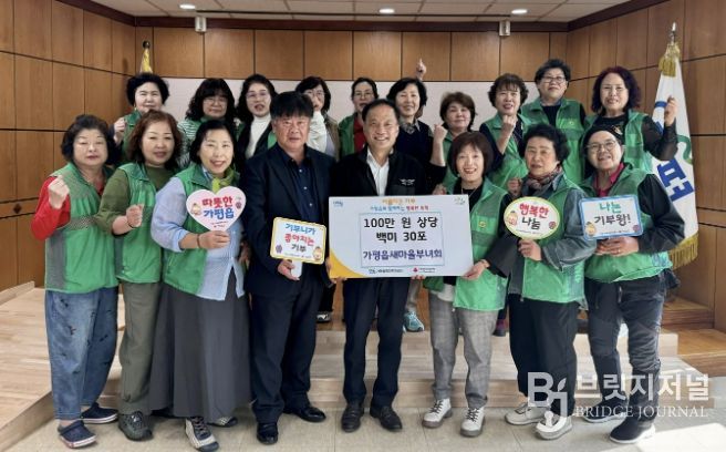 브릿지저널 김경미 기자 | 가평군 가평읍 새마을부녀회는 지난 2일 행정복지센터를 방문해 어려운 이웃을 위한 백미(10kg들이) 30포대를 기탁했다.