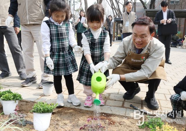 브릿지저널 김경미 기자 | 꿈이 모이는 도시, 미래를 그리는 강남구가 4월 3일 양재천 개포동근린공원에서 제81회 식목일을 맞아 ‘우리 동네 초록기부 챌린지 – 참여의 정원 숲 조성 행사’를 열고, 구민과 함께 정원 숲을 조성했다.