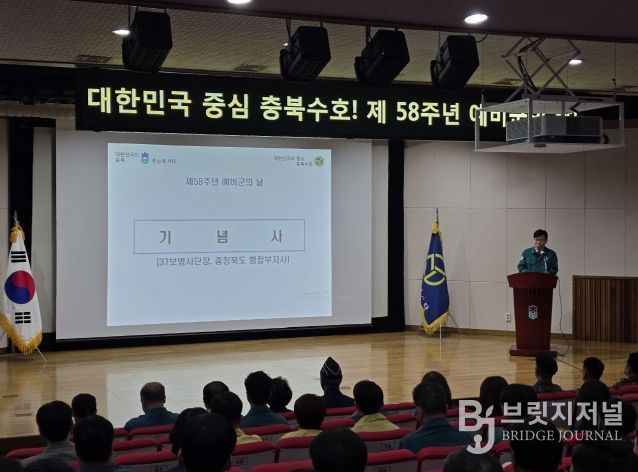 브릿지저널 김경미 기자 | 충북도는 4월 3일 충북미래여성플라자 대강당에서 창설 제58주년 예비군의 날을 기념하여 김영환 충북도지사, 김경수 제37보병사단장, 도내 예비군 지휘관 등 200여 명이 참석한 가운데 예비군 창설의 의의를 선양하고 사명감과 자긍심을 고취시킴으로써 자주국방과 완벽한 지역 향토방위 결의를 다지는 기념식을 개최했다고 밝혔다.