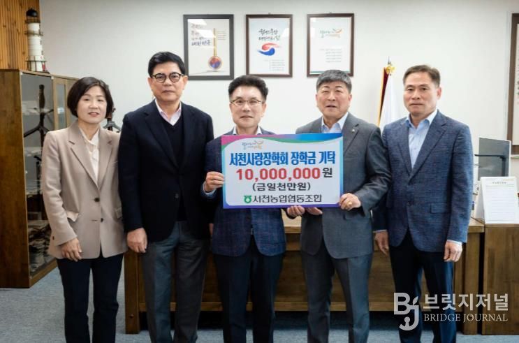 브릿지저널 정보영 기자 | 서천농업협동조합이 지역인재 육성을 위해 서천사랑장학회에 장학금 1000만원을 기탁했다.