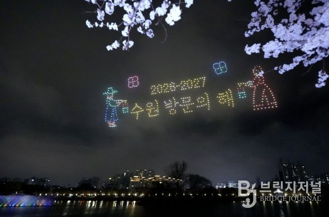 브릿지저널 김경미 기자 | 세계관개시설물 유산인 만석거 일대를 빛으로 수놓는 ‘2026 만석거 새빛축제’의 메인행사인 드론쇼, 불꽃쇼가 4~5일 열려 시민들의 발길을 끌었다.