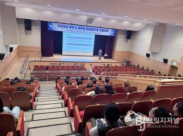 브릿지저널 김경미 기자 | 파주시는 지난 3일 파주시민회관 소공연장에서 민원 담당 공무원 220명을 대상으로 민원 응대 역량 강화를 위한 녪년 파주시 공무원 민원응대 및 친절교육’을 실시했다.