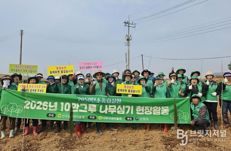 브릿지저널 김경미 기자 | 나주시새마을회가 탄소흡수원 확충과 기후 위기 대응을 위한 나무심기 행사를 추진하며 ‘2050 탄소중립’ 실현을 위한 생활 속 실천 확산에 나섰다.