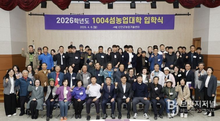 브릿지저널 김경미 기자 | 신안군은 4월 6일 농업기술센터 3층 대강당에서 입학생과 관계자 등 90여 명이 참석한 가운데 ‘2026학년도 1004섬농업대학 입학식’을 성황리에 개최했다고 밝혔다.