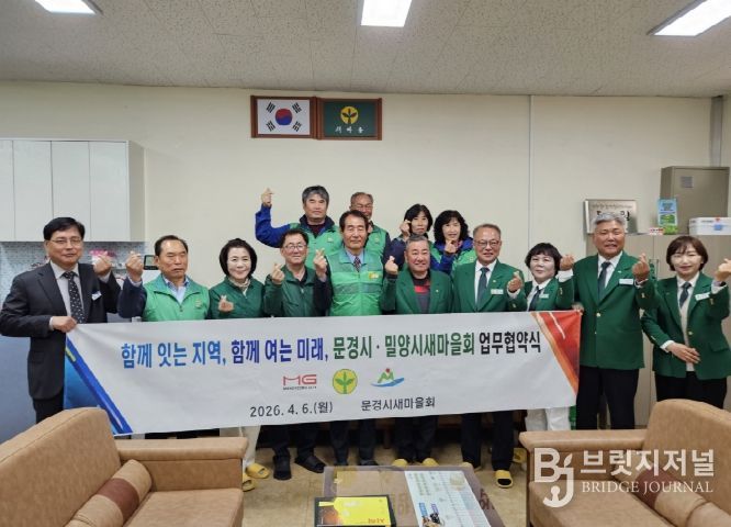브릿지저널 정보영 기자 | 문경시새마을회(지회장 김현수)와 밀양시새마을회(지회장 이선동)는 4월 6일 오후 1시, 문경시새마을회 사무실에서 양 지역 간 상생 발전과 새마을운동 활성화를 위한 업무협약을 체결했다.