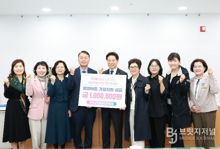 브릿지저널 윤나영 기자 | 완주군 어린이집연합회(회장 이희봉)는 최근 입양 전 보호아동을 위해 성금 100만원을 완주군에 전달했다.