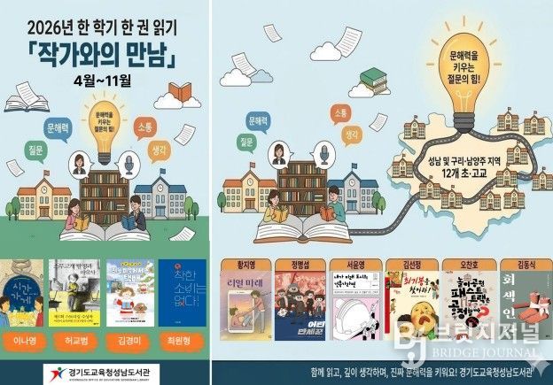 브릿지저널 김경미 기자 | 경기도교육청성남도서관이 성남과 구리·남양주 지역의 12개 초등학교 및 고등학교 학생들의 기초 문해력 향상과 깊이 있는 독서경험을 위해 ‘2026년 작가와의 만남’을 운영한다.