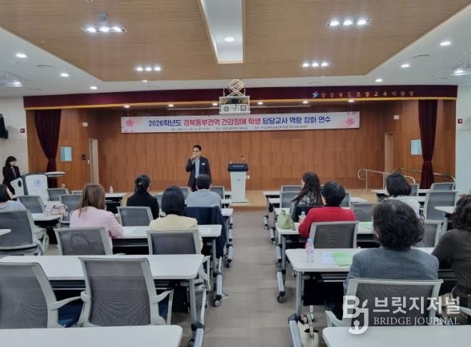브릿지저널 정보영 기자 | 포항교육지원청은 2026년 4월 3일 포항교육지원청 5층 대회의실에서 경북동부권역(포항,영덕,울진,청송,울릉) 건강장애학생 담당교사 30여명을 대상으로 2026학년도 경북동부권역 건강장애학생 담당교사 역량강화 연수를 실시했다.