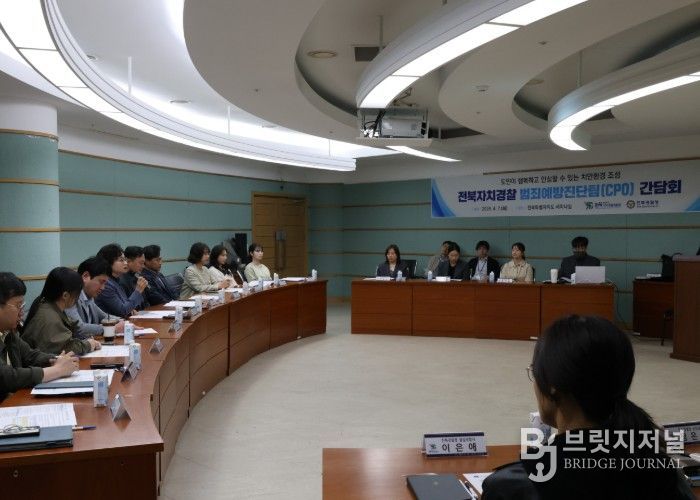브릿지저널 윤나영 기자 | 전북자치경찰위원회는 7일 도청 공연장동 세미나실에서 전북경찰청 범죄예방진단팀(CPO)과 간담회를 개최하고, 도민이 안심할 수 있는 치안환경 조성을 위한 정책 방향을 논의했다.