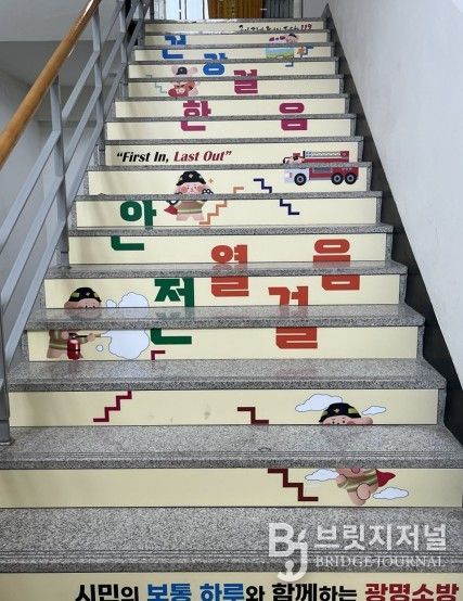 브릿지저널 김경미 기자 | 광명소방서는 직원들의 건강 증진과 활기찬 근무환경 조성을 위해 본서 주계단에 ‘안전건강계단’을 설치했다고 밝혔다.