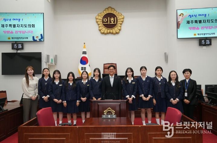 브릿지저널 정보영 기자 | 제주특별자치도의회는 4월 7일 오후 3시, 본회의장에서 제주여자중학교 학생자치회 학생들과 함께 청소년의회 의정체험을 추진했다.