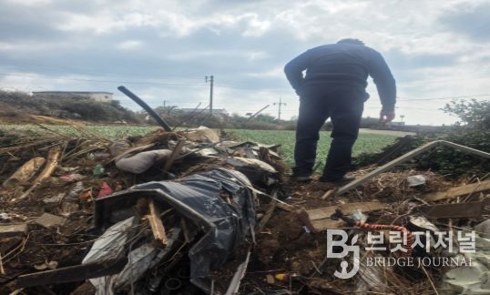 브릿지저널 정보영 기자 | 제주특별자치도 자치경찰단은 서귀포시 대정읍 영락리 일대 농지에 사업장 폐기물을 무단으로 운반·적치한 공사 관계자 2명과 관련 법인을 '폐기물관리법' 위반 혐의로 검찰에 송치했다.