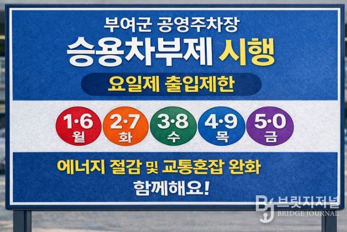 브릿지저널 정보영 기자 | 부여군은 중동 정세 지속에 따른 자원안보위기에 대응하여 에너지 소비 절감과 지역 교통환경 개선을 위해 승용차부제를 시행한다고 밝혔다.
