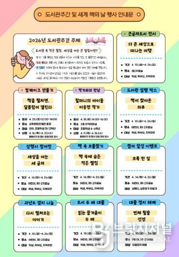 브릿지저널 윤나영 기자 | 춘천교육문화관은 4월 10일부터 4월 26일까지 2026년 ‘도서관주간 및 세계 책의 날’ 행사를 운영한다.