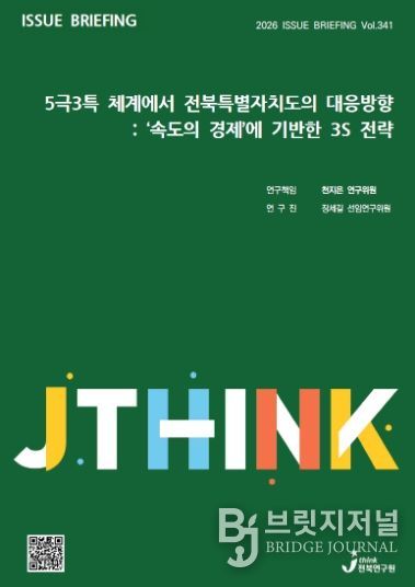 전북연구원(원장 최백렬)은 '5극3특 체계에서 전북특별자치도의 대응방향: ‘속도의 경제’에 기반한 3S 전략' 이슈브리핑을 통해 비대칭적인 5극3특 체제와 전남·광주통합특별시법 국회 통과 등 행정통합 가속화 속에서 전북의 전략적 고립을 극복하기 위한 입법 프레임워크를 제시했다.