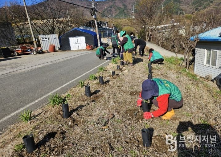 브릿지저널 김경미 기자 | 밀양시새마을회(회장 이선동)와 새마을지도자밀양시협의회(회장 허석)는 8일 산내면 동명마을에서 ‘한반도 평화공존 실현을 위한 민간산림협력 캠페인’의 일환으로 탄소중립 실천 나무심기 행사를 개최했다.