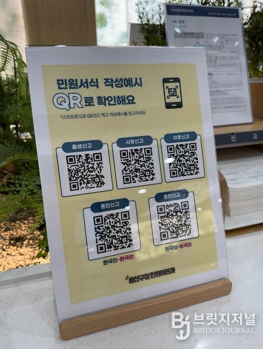 구는 이러한 불편함을 줄이고 작성 어려움을 해소하기 위해 주요 신고서의 작성 예시를 정보무늬(QR코드)로 제작해 구 누리집에 게시하고, 구청 민원실에 비치했다.