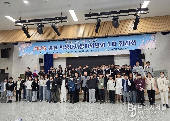 브릿지저널 정보영 기자 | 경산교육지원청은 4월 8일, 학생교육지원관 2강당에서 관내 초·중·고등학교 학생회장을 대상으로 ‘2026학년도 경산 학생자치참여위원회 1차 정례회’와 리더십 함양 특강을 개최했다.