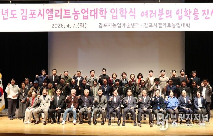 브릿지저널 김경미 기자 | 김포시는 지난 4월 7일 김포아트홀에서 신입생과 내빈 등 150여 명이 참석한 가운데 ‘2026학년도 제19기 김포시엘리트농업대학 입학식’을 개최했다.