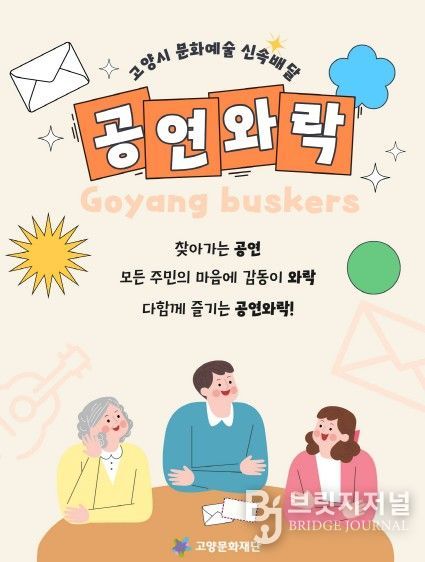 브릿지저널 김경미 기자 | 고양문화재단은 시민의 일상 가까이에서 문화예술을 향유할 수 있도록 찾아가는 버스킹 프로그램 ‘공연와락’을 4월부터 11월까지 운영한다.