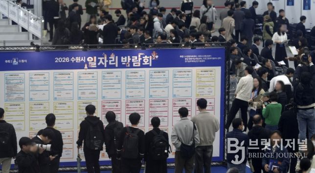 브릿지저널 김경미 기자 | 수원특례시가 9일 수원컨벤션센터 전시홀에서 개최한 ‘2026 수원시 일자리박람회’에 2028명이 찾았다.