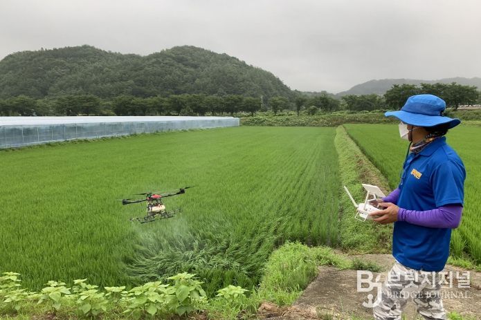 브릿지저널 윤나영 기자 | 무주군이 농업인 고령화에 따른 일손 부족 문제 해소와 벼 병해충 방제를 위해 무인 항공(드론)을 활용한 공동방제 사업을 추진한다고 밝혔다.