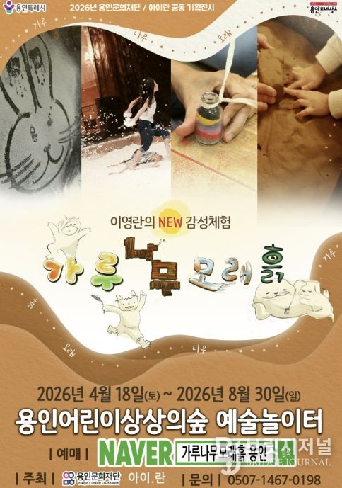 브릿지저널 김경미 기자 | 용인문화재단은 오는 4월 18일부터 8월 30일까지 용인어린이상상의숲 에술놀이터에서 대한민국 대표 어린이 체험 콘텐츠로 알려진 이영란 작가의 감성체험 〈가루나무모래흙〉을 선보인다.