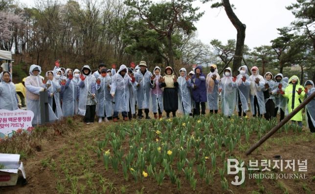 브릿지저널 김경미 기자 | 수원시 장안구는 지난 4월 9일, 노송공원에서 장안구 손바닥정원단과 함께 ‘맥문동정원 봄맞이 가드닝’을 추진했다.