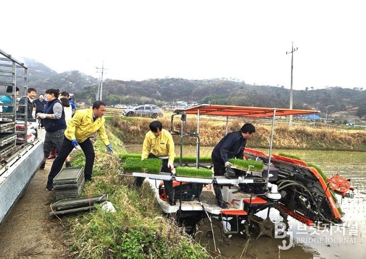 브릿지저널 윤나영 기자 | 순창군이 10일 풍산면에서 올해 첫 모내기를 실시하며 본격적인 영농철의 시작을 알렸다. 이번에 심은 벼는 조생종(해담벼) 품종으로, 일반적인 모내기 시기보다 앞당겨 이앙함으로써 기후 변화에 대응, 조기 수확을 목표로 한다.