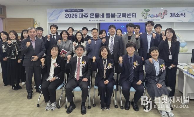 브릿지저널 김경미 기자 | 경기도파주교육지원청은 4월 8일, 물향기초등학교 내 파주 온동네 돌봄·교육센터 ‘함께자람’ 개소식을 개최했다. ‘함께자람’은 학교 안팎의 다양한 지역자원을 연계해 초등학생에게 정규수업 이후 돌봄·교육 통합 서비스를 제공하여 학생들이 함께 성장할 수 있도록 지원하는 지역 거점형 센터이다.